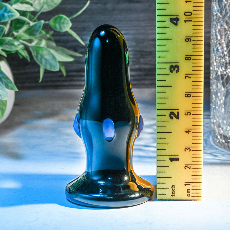 Explore your back-door pleasure with this beautiful, sleek, black glass plug. It’s nonporous, body-safe and ready to rock your rump in 10 mild to wild speeds with a simple one-button control at its base. The long, tapered end delivers a smooth, easy entry while the centre gradually swells out to make sure you stimulate all the sensitive nerve endings around this unique erogenous zone. Navigate with the flared safety base and colorful glass nubs at the mid-line to discover how you can take your orgasmic intensity to the next level!